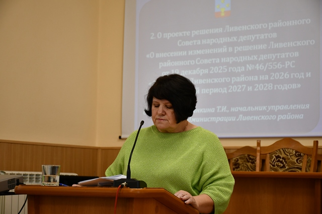 Первым по повестке был рассмотрен вопрос "О внесении изменений в бюджет Ливенского района на 2025 год и на плановый период 2026 и 2027 годов", который озвучила начальник управления финансов администрации района Т.И. Гранкина.