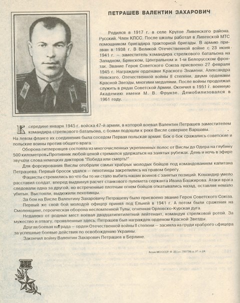 Мемориальная доска с именем Героя Советского Союза Петрашова Валентина Захаровича