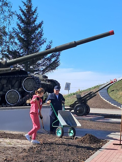 Силами работников администрации района продолжаются работы по благоустройству мемориала "Курган Славы".