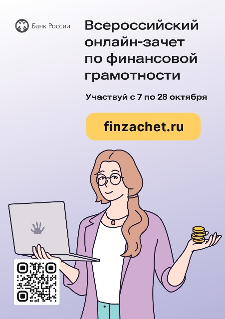 Сейчас по всей стране проходит Всероссийский онлайн-зачет по финансовой грамотности. Он продлится до 28 октября 2025 года. Для каждого из нас это возможность проверить актуальность своих знаний по финансовой грамотности, в том числе вашу готовность противостоять мошенникам. Время на прохождение зачета составляет не более 20 минут. Можно пройти зачет как лично, так и всей семьей. Приглашаем присоединиться к зачету по ссылке