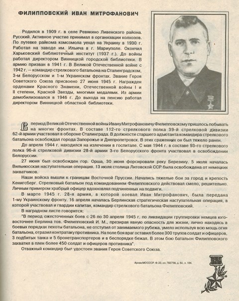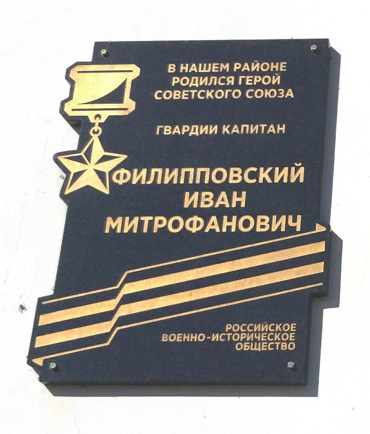 Мемориальная доска с именем Героя Советского Союза Филипповского Ивана Митрофановича