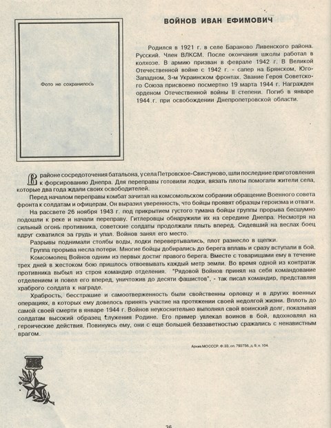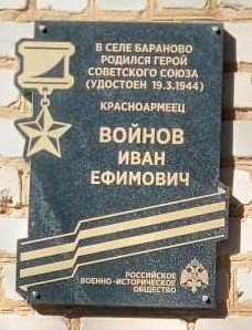 Мемориальная доска с именем Героя Советского Союза Войнова Ивана Ефимовича