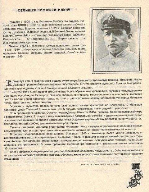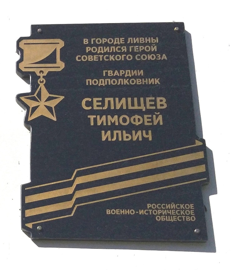 Мемориальная доска с именем Героя Советского Союза Селищева Тимофея Ильича