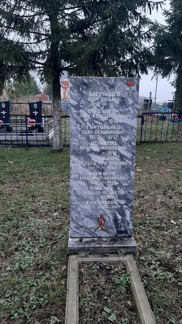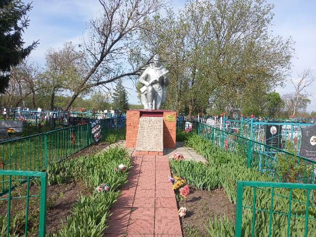 Братская могила находится в центре села. Скульптура воина установлена на постаменте в форме параллелепипеда. Дорожка к памятнику выложена тротуарной плиткой. Слева установлены 2 гранитные мемориальные плиты с именами павших воинов. Захоронено - 87.