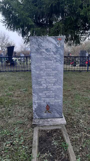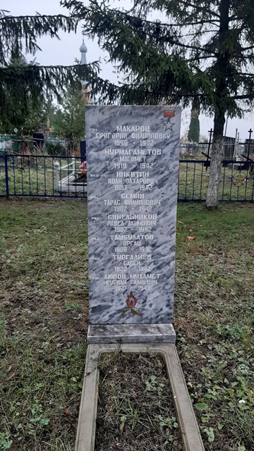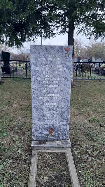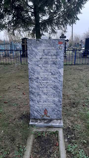 Братская могила находится на территории гражданского кладбища. Представляет собой аллею павшим воинам, в центре аллеи установлена мраморная стела, с двух сторон от нее расположены 10 памятников из мрамора. В 2019 году был проведен ремонт, установлены 10 гробниц, выложена дорожка из тротуарной плитки. Захоронены - 82.