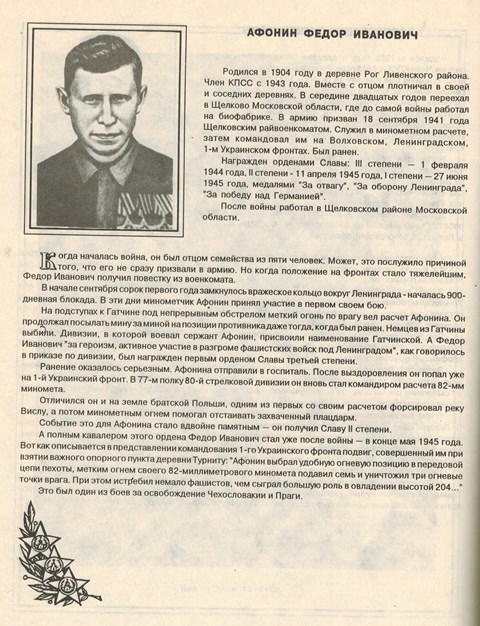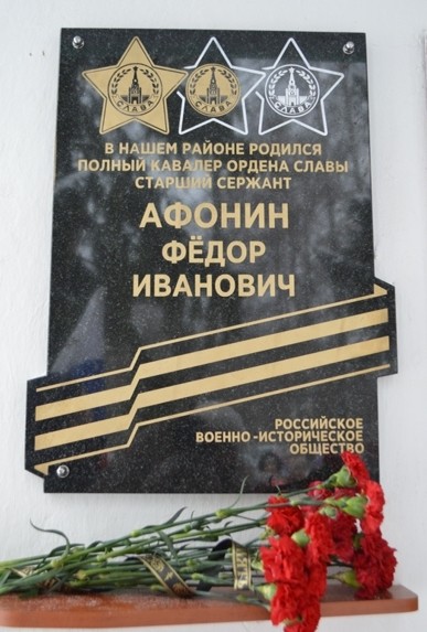 Мемориальная доска с именем полного кавалера ордена Славы Афонина Фёдора Ивановича