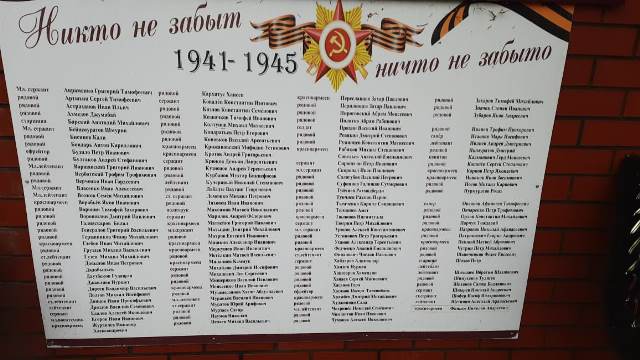 Братское захоронение находится в центре села. Надгробие представляет собой скульптуру "Коленопреклоненный воин с обнаженной головой и приспущенным знаменем", установленную на постаменте в форме параллелепипеда, облицованном красным кирпичом. На постаменте закреплена мемориальная плита с именами павших воинов. Всего захороненных – 134.