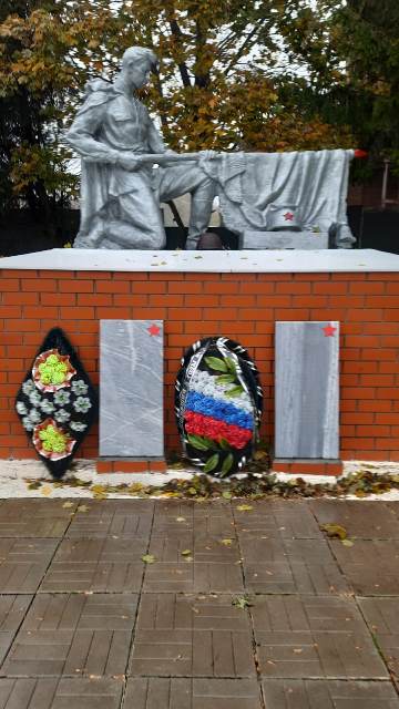 Скульптура "Солдат с автоматом" изготовлена их бетона. Скульптура установлена на постаменте, облицованном красным кирпичом. На мемориальных плитах увековечены имена погибших. Захоронены - 256, из них известных - 253, неизвестных - 3.