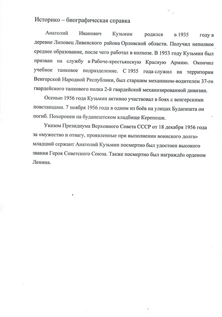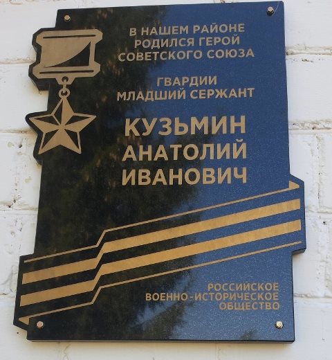 Мемориальная доска с именем Героя Советского Союза Кузьмина Анатолия Ивановича