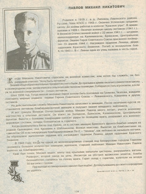 Мемориальная доска с именем Героя Советского Союза Павлова Михаила Никитовича