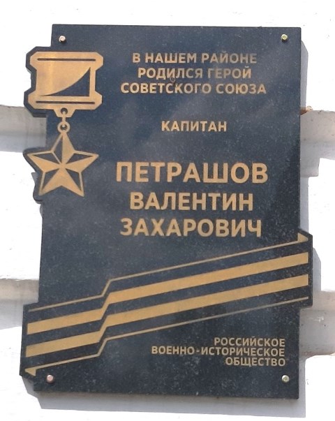 Мемориальная доска с именем Героя Советского Союза Петрашова Валентина Захаровича