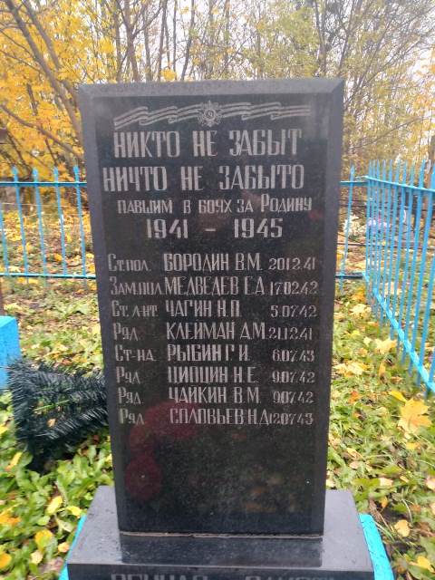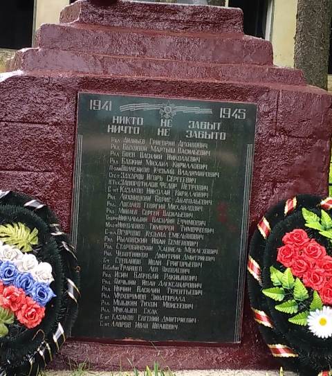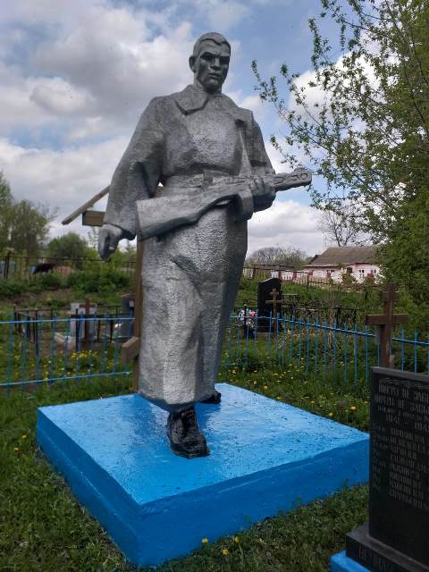 Братская могила находится на северной окраине сельского кладбища. Надгробие, установленное в 60-е годы, представляет собой скульптуру скорбящего воина, установленную на постаменте в форме параллелепипеда. Справа от памятника установлена мемориальная плита с именами павших воинов. В 2018 году проведено захоронение 2 неизвестных солдат поднятых поисковым отрядом "Подвиг" в огороде местного жителя. Всего захороненных – 10, из них известных – 8, неизвестных – 2.