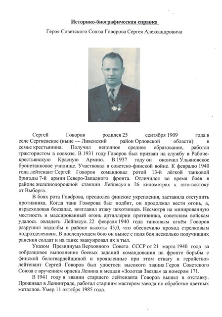 Мемориальная доска с именем Героя Советского Союза Говорова Сергея Александровича