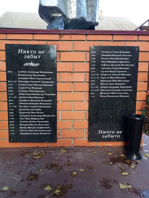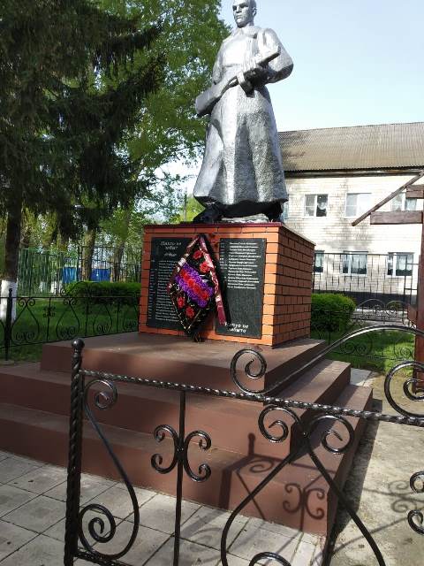 Скульптура солдата установлена на постаменте. Постамент облицован красным кирпичом, ступени плиткой. Захоронены - 35, известных - 35.