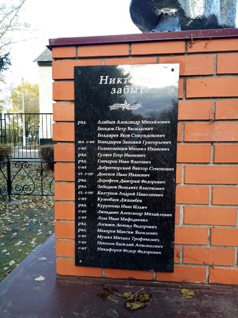 Братская могила воинов, погибших в 1943 году. Орловская область, Ливенский район, с. Остров, ул. Центральная, 12а