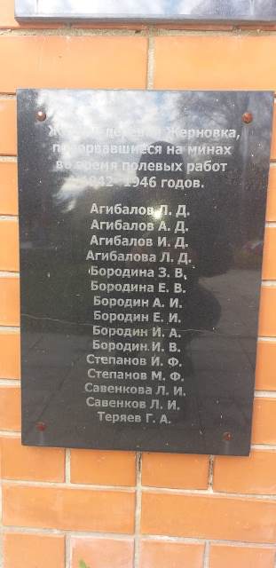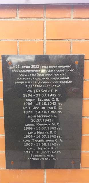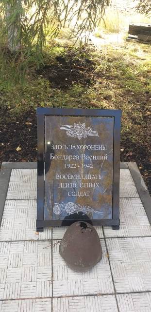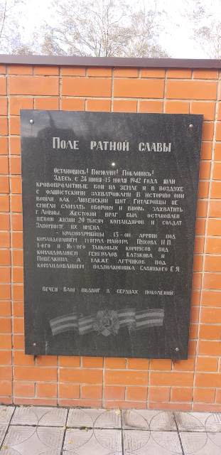 В 2015 году Депутатами Ливенского районного Совета народных депутатов совместно с хозяйствующими субъектами была установлена стела из красного кирпича с боковыми установками для мемориальных плит. Всего захороненных - 122, из них: известных - 63, неизвестных - 59.