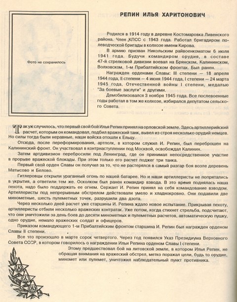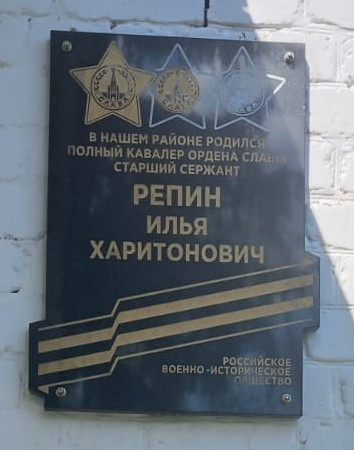 Мемориальная доска с именем полного кавалера ордена Славы Репина Ильи Харитоновича