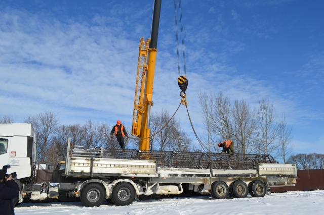 остановилась для осмотра реконструируемого моста через реку Сосна на