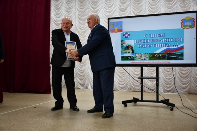 Со словами поздравлений и благодарности за добросовестный труд к присутствующим обратились заместитель Губернатора Орловской области в Правительстве Орловской области по развитию агропромышленного комплекса Сергей Борзенков, заместитель председателя по аграрной политике, природопользованию и экологии Орловского областного Совета народных депутатов Михаил Жилин, глава района Анатолий Шолохов, генеральный директор открытого акционерного общества «Сосновка» Николай Ревин, начальник Управления ветеринарии Орловской области – Алексей Максимовский, начальник БУОО «Ливенский межрайонный центр ветеринарии» - Сергей Аверкиев.