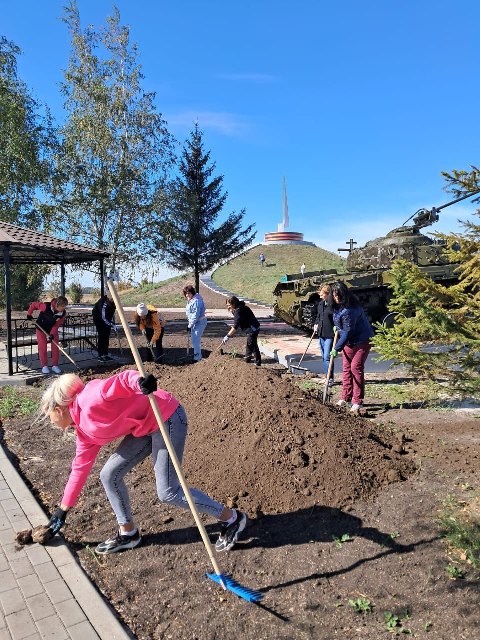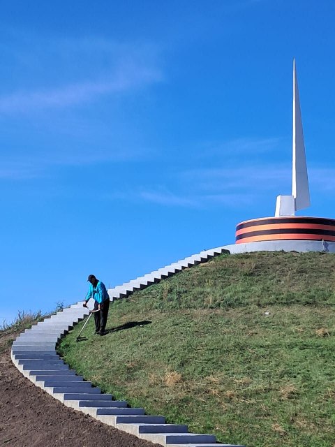 Силами работников администрации района продолжаются работы по благоустройству мемориала "Курган Славы".