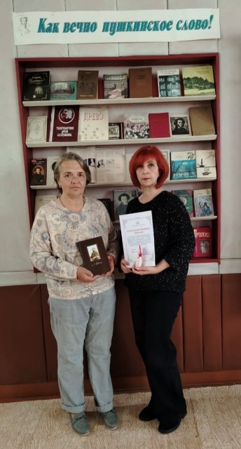 Читатели Елена Пигарева, Варвара Плотникова, Самира Губата (Парахинская сельская библиотека), Вероника Огурцова (Троицкая сельская библиотека) прошли в финал конкурса. Мария Васильевна вручила сертификаты участников, дипломы финалистов и памятные подарки (книги В. Катанова).
