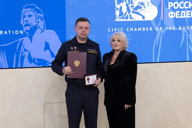 Накануне в Москве в Общественной палате Российской Федерации нашему коллеге -капитану внутренней службы Александру Чепурнову, заместителю начальника отделения оперативного дежурства УФССП России, вручена общественная медаль «За активную военно-патриотическую работу».